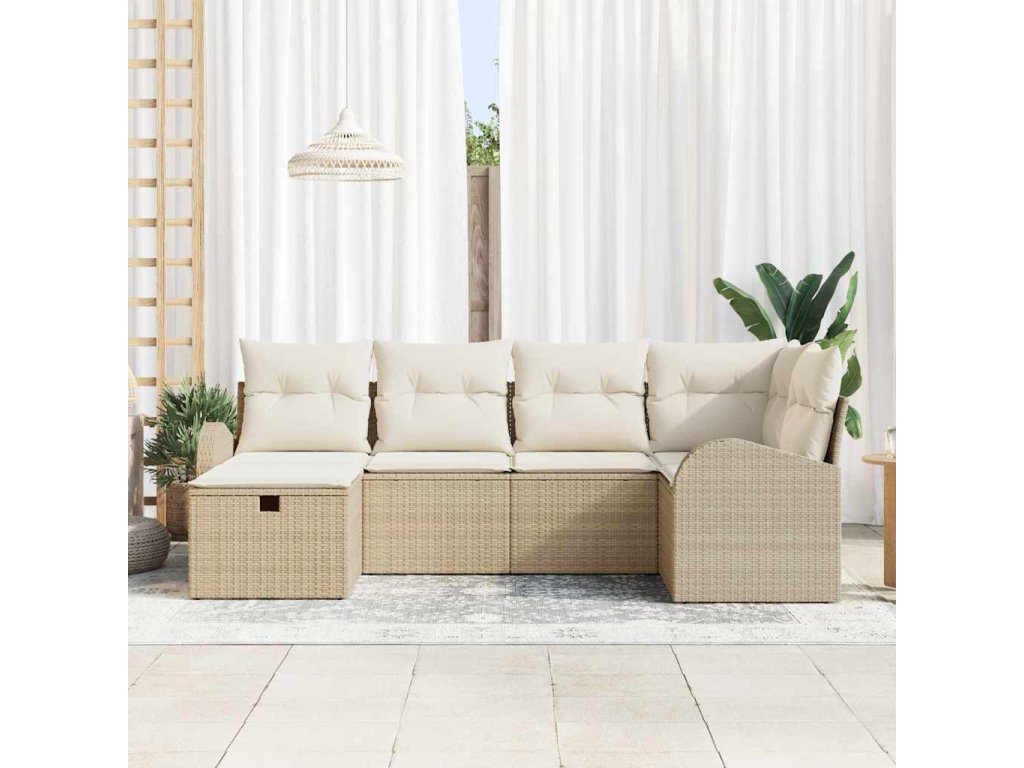 Sada zahradních pohovek s polštářem 6 pcs Béžová Poly ratan 3360412