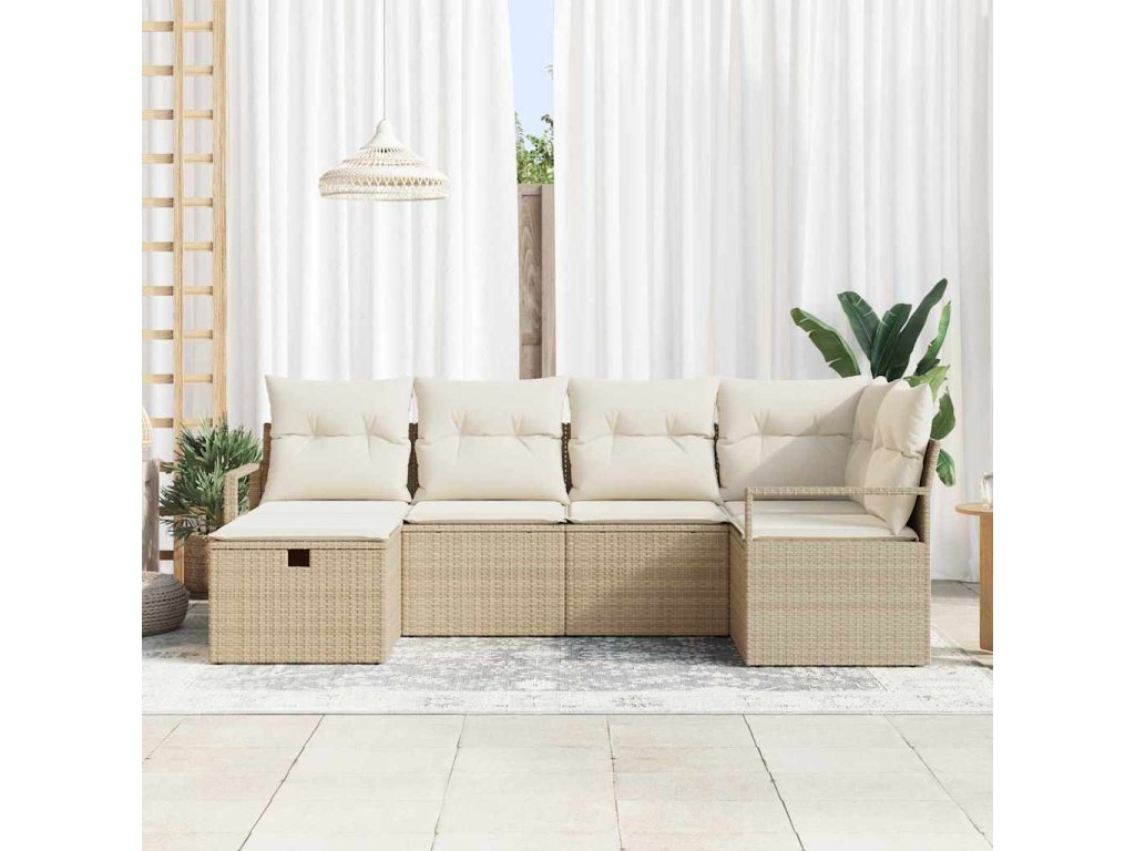 Sada zahradních pohovek s polštářem 6 pcs Béžová Poly ratan 3360512