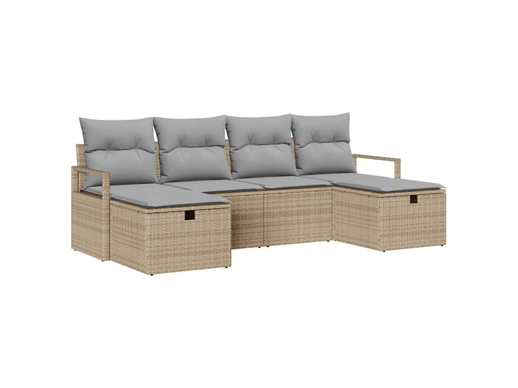 Sada zahradních pohovek s polštářem 6 pcs Béžová Poly ratan 3360551