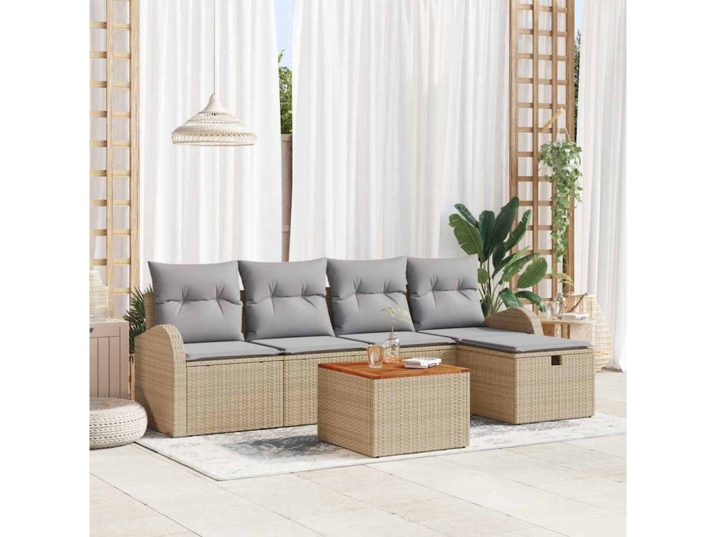 Sada zahradních pohovek s polštářem 6 pcs Béžová Poly ratan 3360836