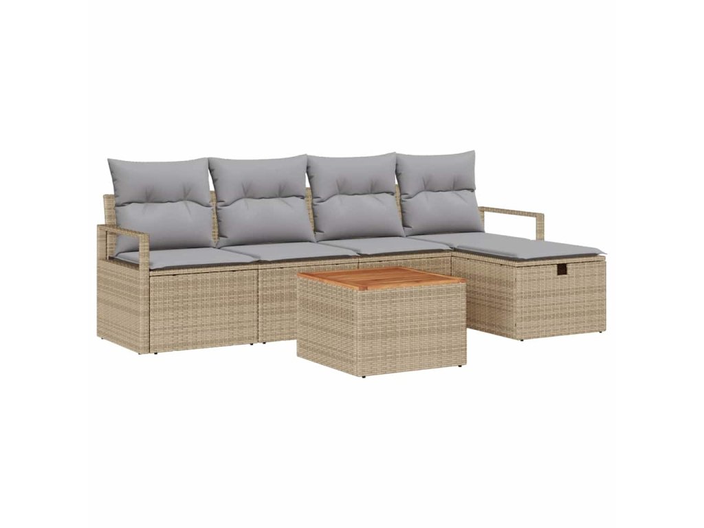 Sada zahradních pohovek s polštářem 6 pcs Béžová Poly ratan 3360864