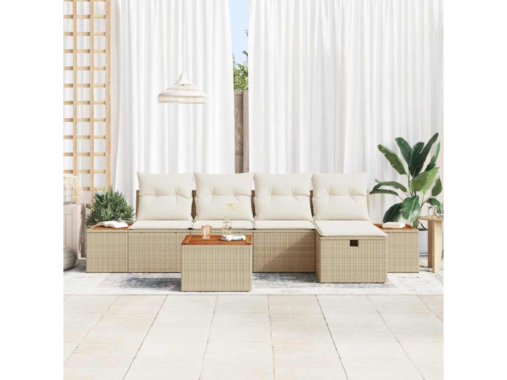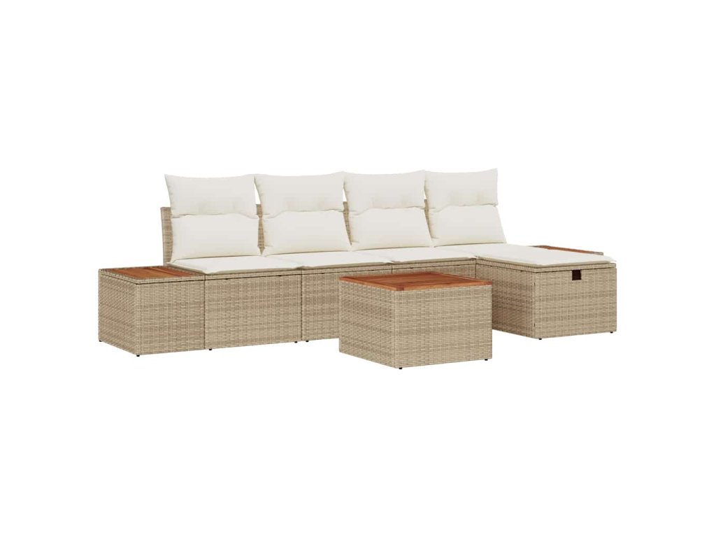 Sada zahradních pohovek s polštářem 6 pcs Béžová Poly ratan 3360960