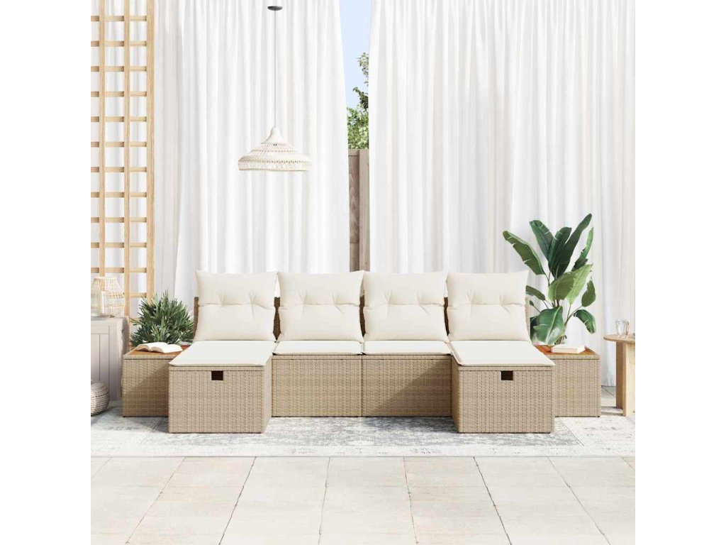 Sada zahradních pohovek s polštářem 6 pcs Béžová Poly ratan 3360985