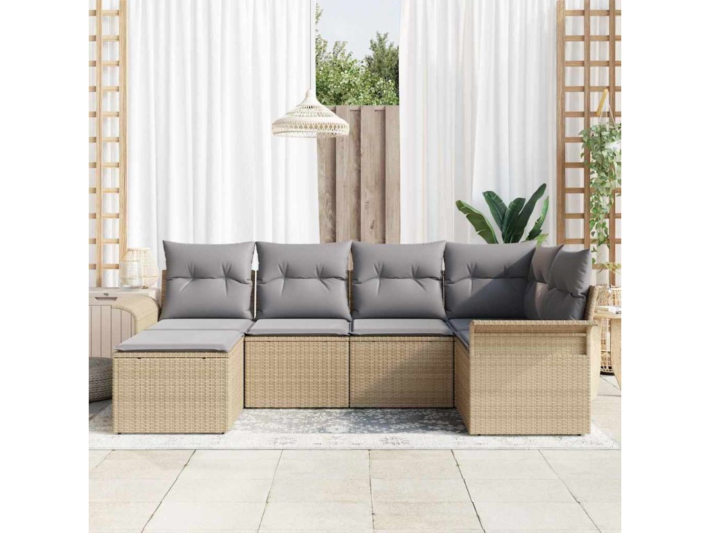 Sada zahradních pohovek s polštářem 6 pcs Béžová polyratan 3345430