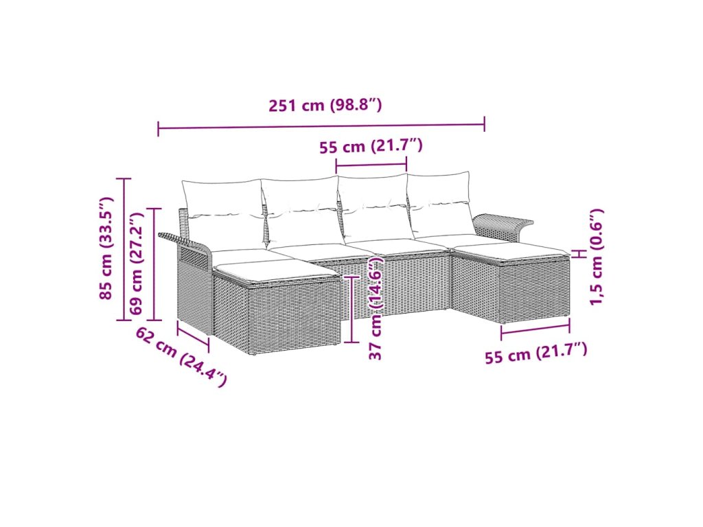 - Poly ratanová konstrukce Tento pohovkový set je z prvotřídního poly ratanového materiálu, co odolává UV záření a je super pro venkovní prostředí. Jeho moderní vzhled a flexibilní design dělají z něj univerzální volbu, co vydrží dračí podmínky a čas.