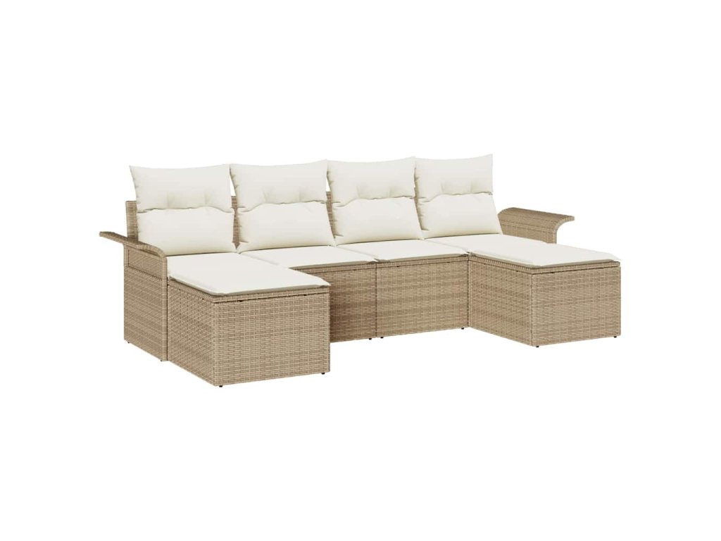 Sada zahradních pohovek s polštářem 6 pcs Béžová polyratan 3345471
