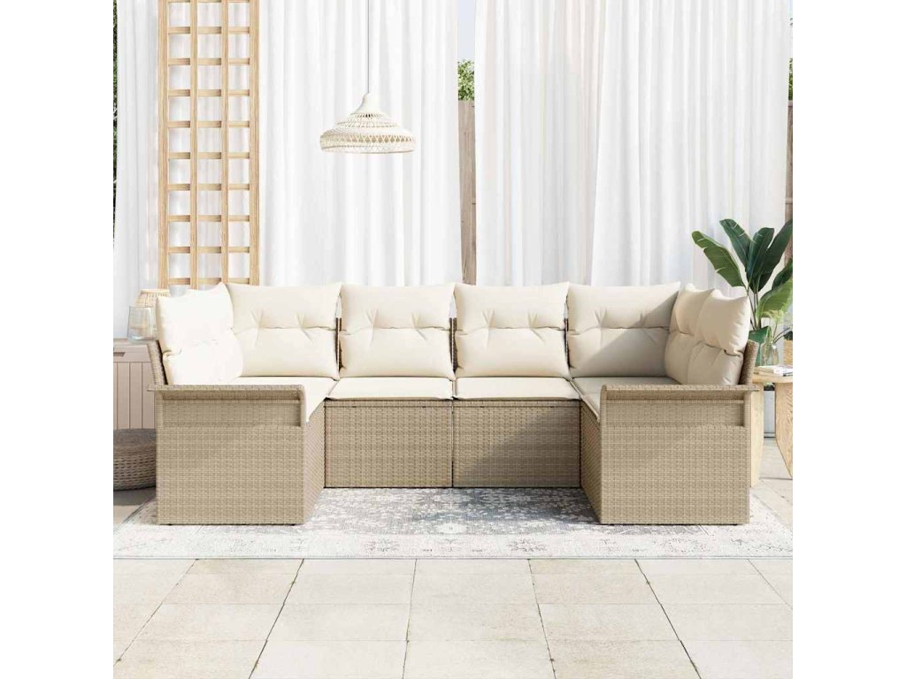 Sada zahradních pohovek s polštářem 6 pcs Béžová polyratan 3345501