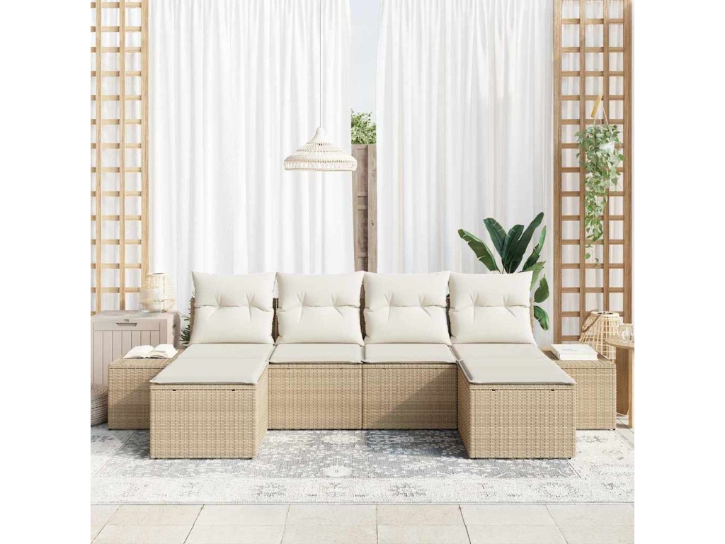 Sada zahradních pohovek s polštářem 6 pcs Béžová polyratan 3347171