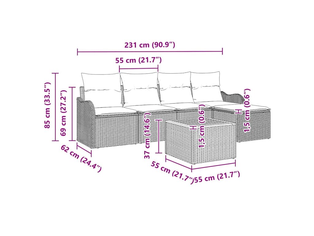 Tato modulární zahradní sedačka přináší do vašeho venkovního prostoru moderní eleganci. S jednoduchými linii a minimem ozdob je ideální pro ty, co mají rádi současný styl. Pobízí k relaxaci v různých uspořádáních a nabízí dostatek místa pro sdílení nebo klidné rozjímání. Skvěle zpracovaná s komponenty odolnými vůči povětrnostním vlivům, souprava dokonale zapadne na jakoukoli terasu, zahradu nebo venkovní kout a vytváří příjemné prostředí pro venkovní zážitky.