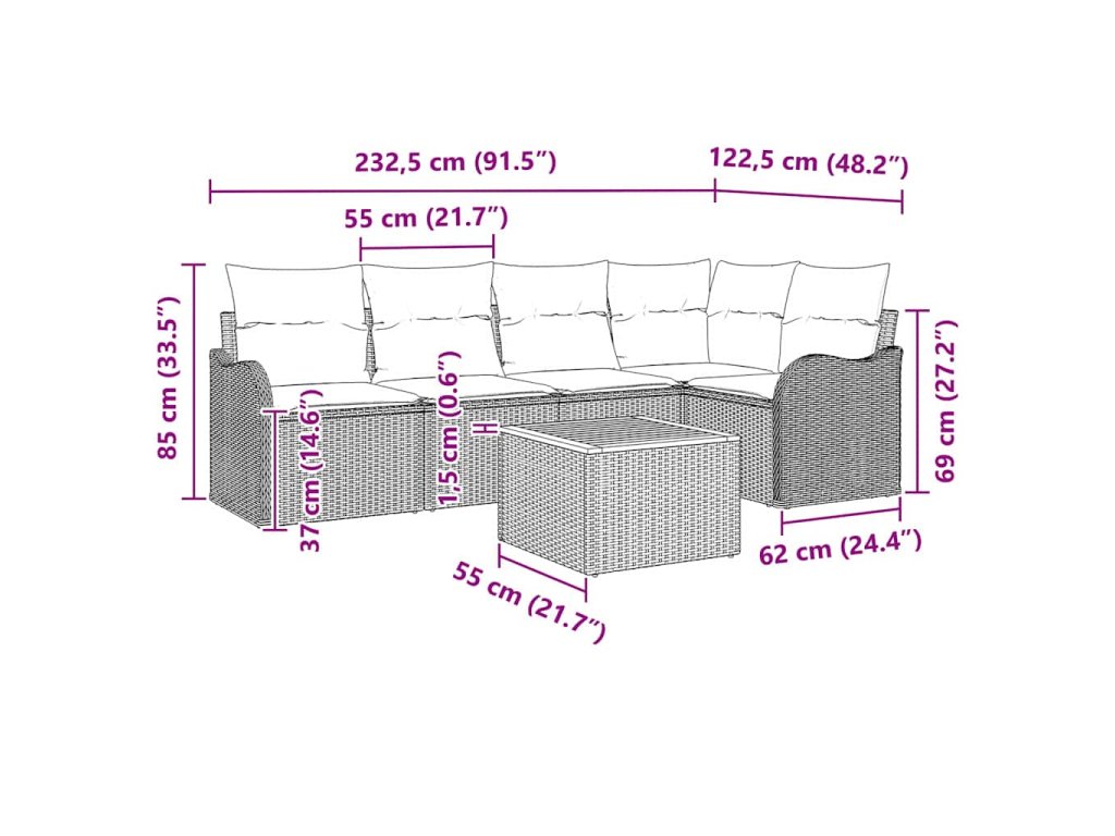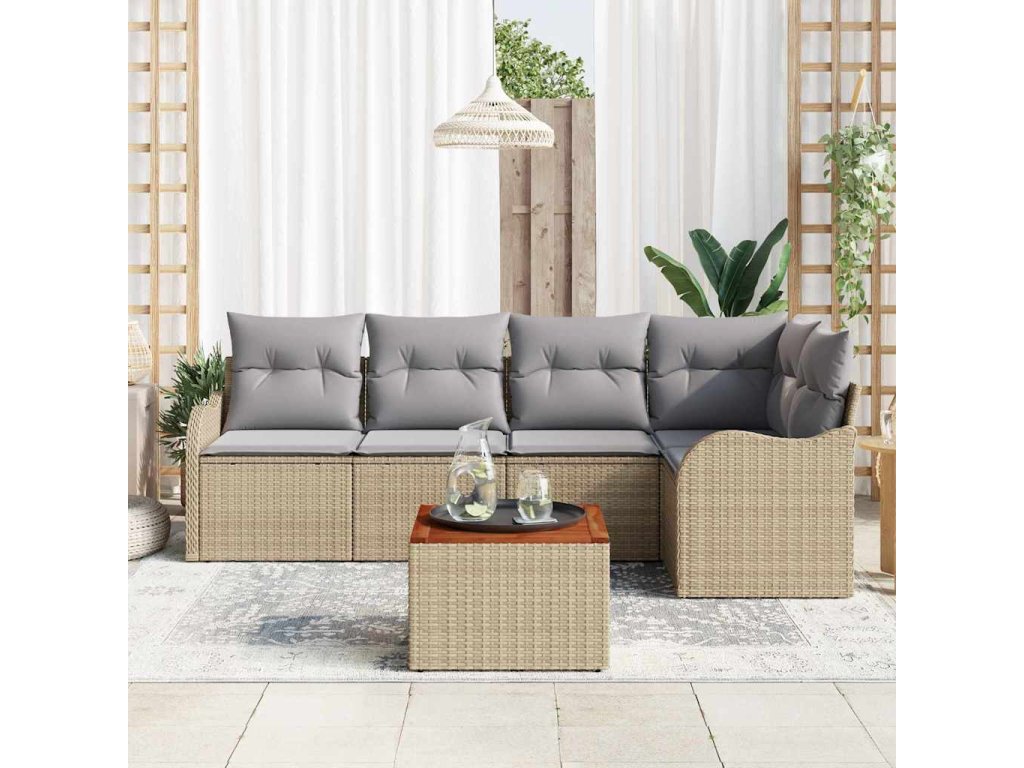 Sada zahradních pohovek s polštářem 6 pcs Béžová polyratan 3347455