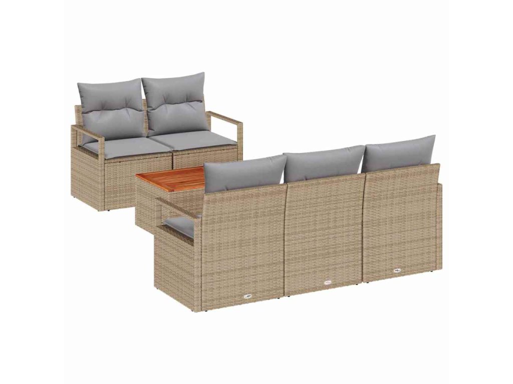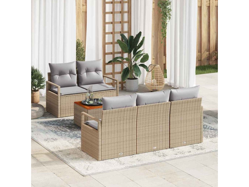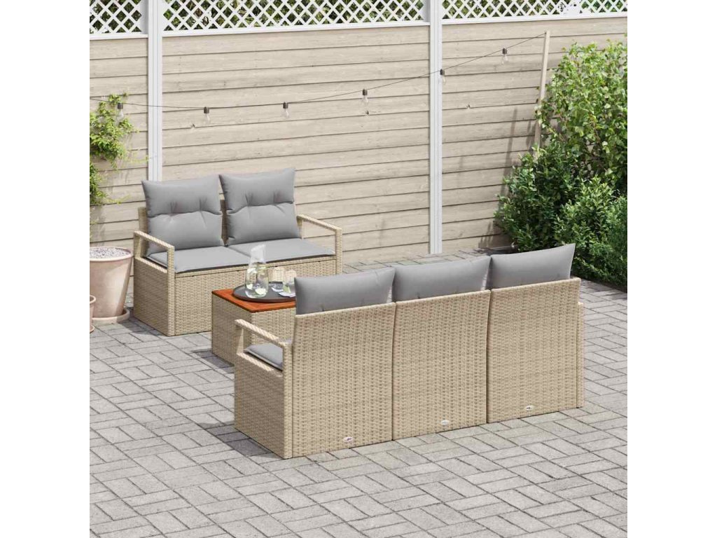Sada zahradních pohovek s polštářem 6 pcs Béžová polyratan 3347644
