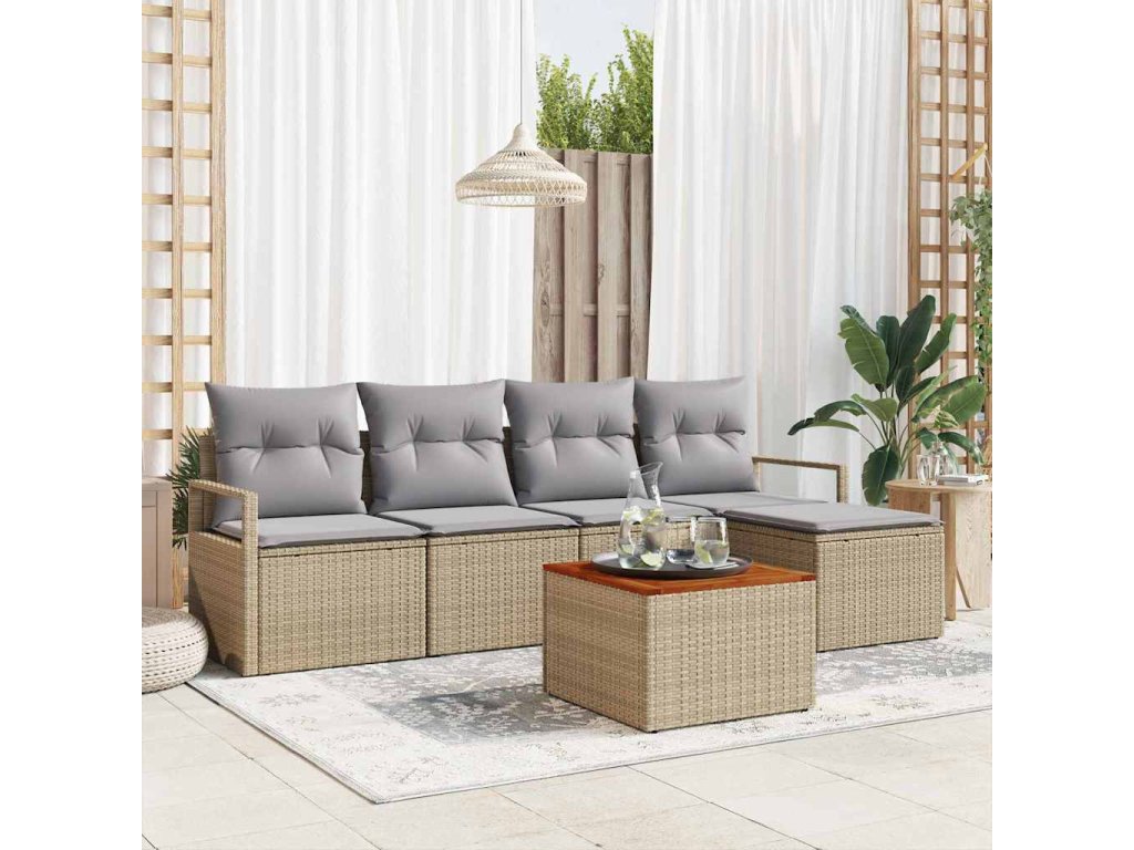 Sada zahradních pohovek s polštářem 6 pcs Béžová polyratan 3347693