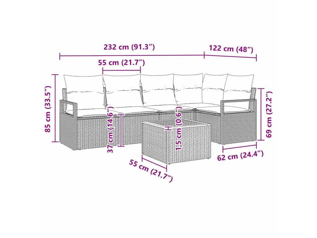 Sada zahradních pohovek s polštářem 6 pcs Béžová polyratan 3347707