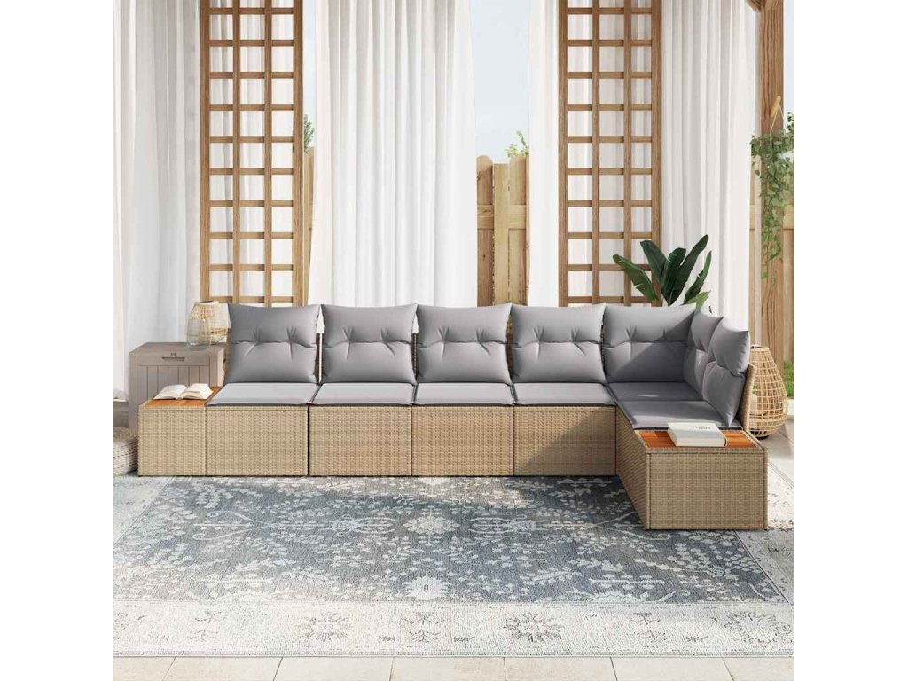 Sada zahradních pohovek s polštářem 6 pcs Béžová polyratan 3348096