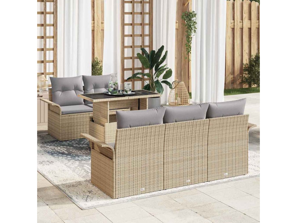 Sada zahradních pohovek s polštářem 6 pcs Béžová polyratan 3348196