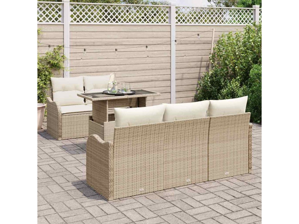 Sada zahradních pohovek s polštářem 6 pcs Béžová polyratan 3348377