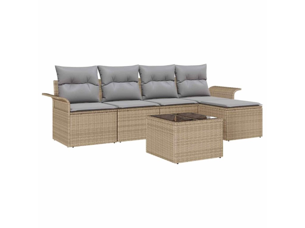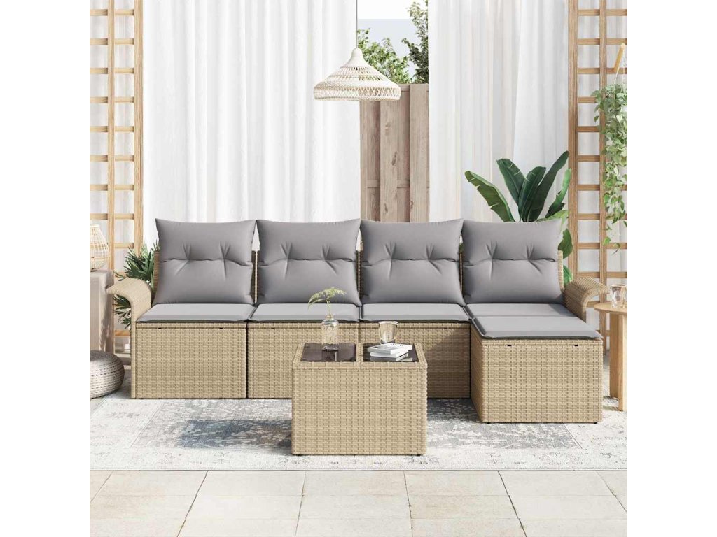 Sada zahradních pohovek s polštářem 6 pcs Béžová polyratan 3353999