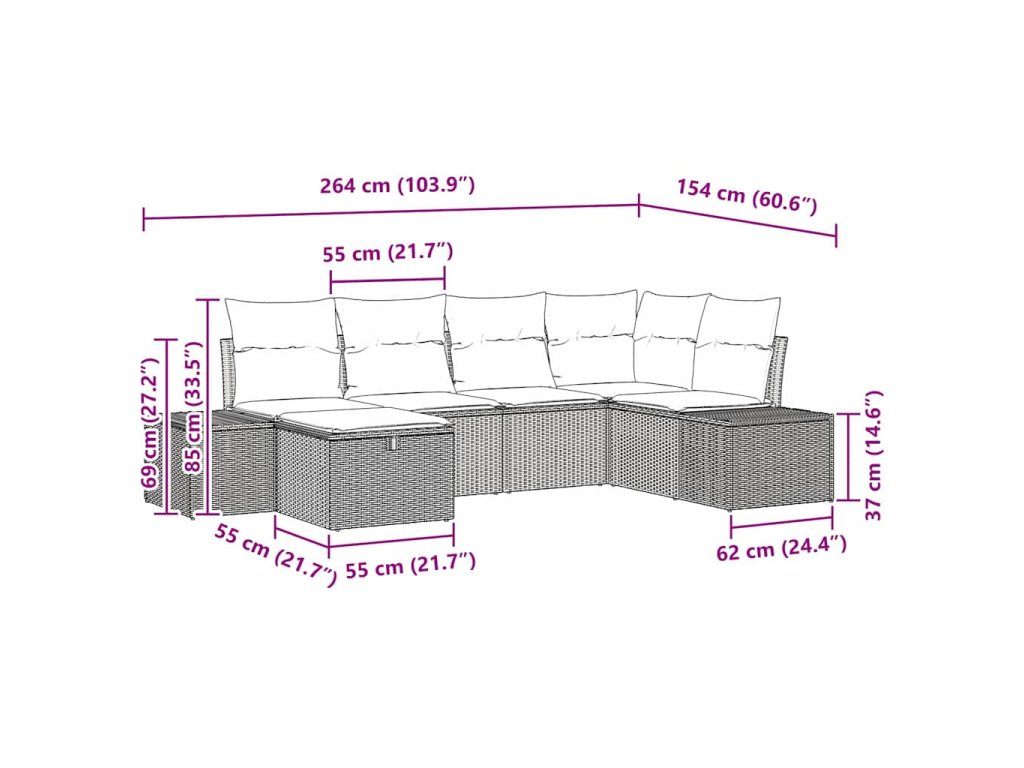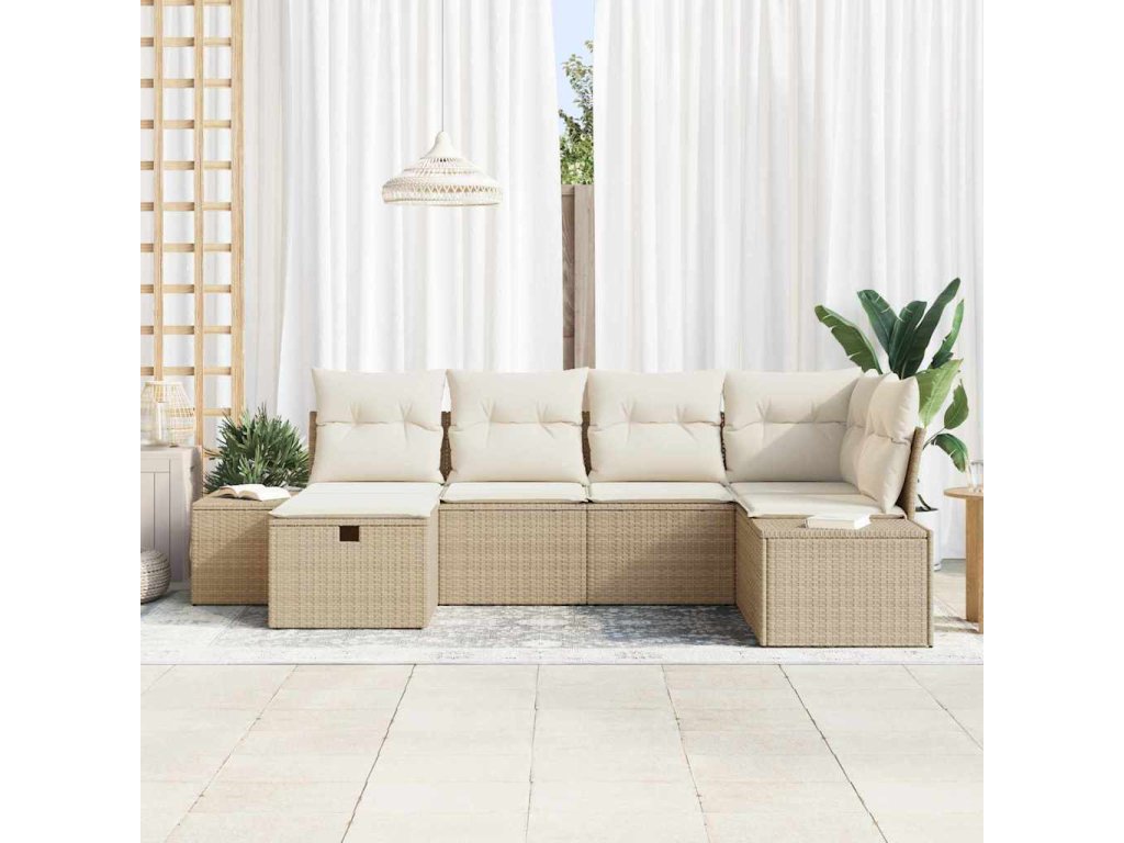 Sada zahradních pohovek s polštářem 6 pcs Béžová polyratan 3359380
