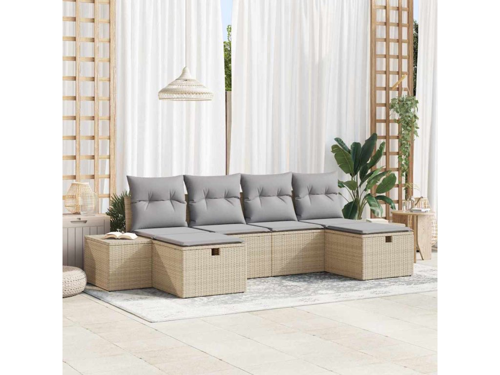 Sada zahradních pohovek s polštářem 6 pcs Béžová polyratan 3360751