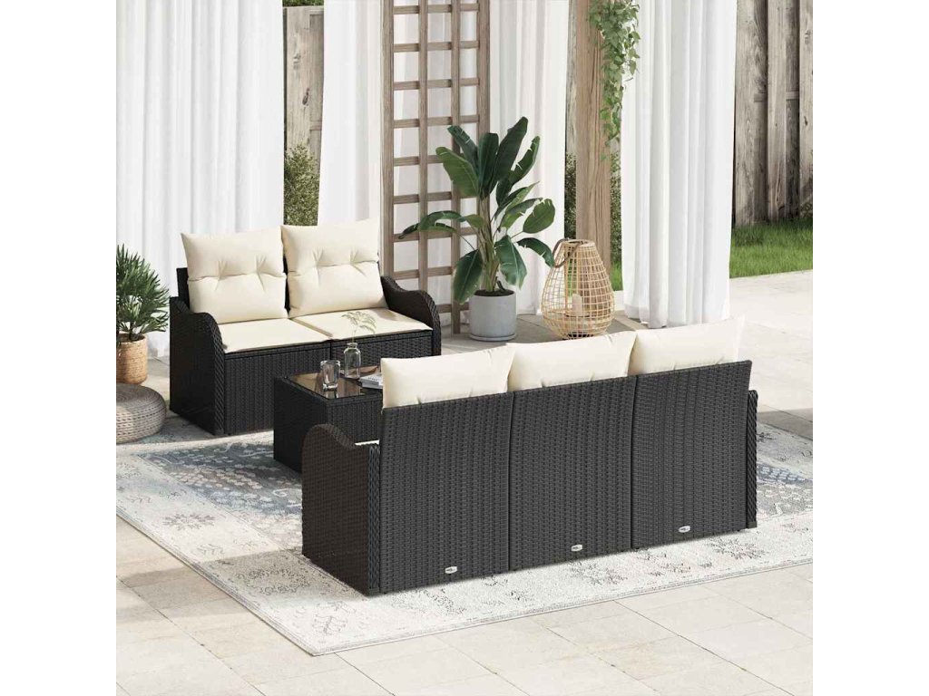 Sada zahradních pohovek s polštářem 6 pcs Černá a krémová 3354246