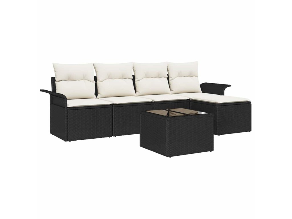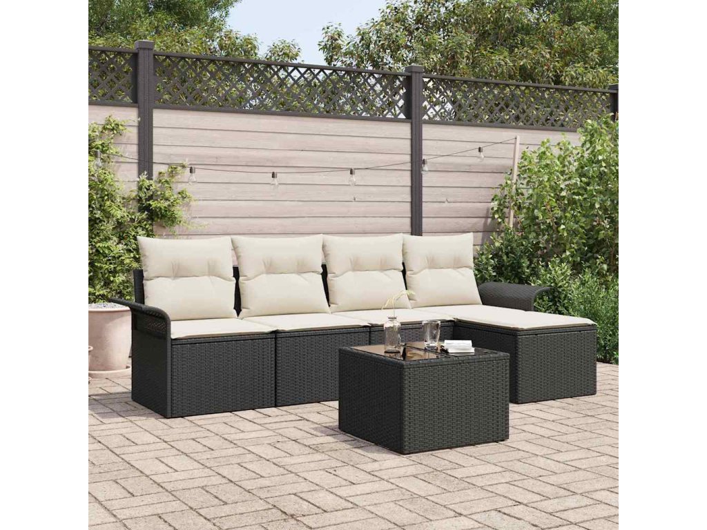 Sada zahradních pohovek s polštářem 6 pcs Černá Poly ratan 3345327