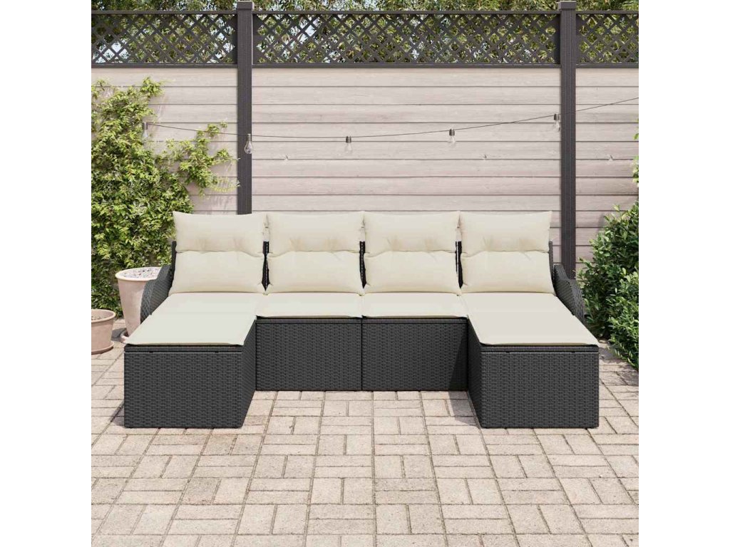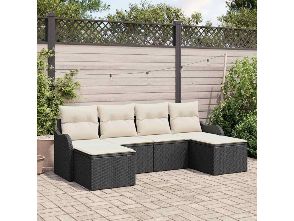 Sada zahradních pohovek s polštářem 6 pcs Černá Poly ratan 3345807