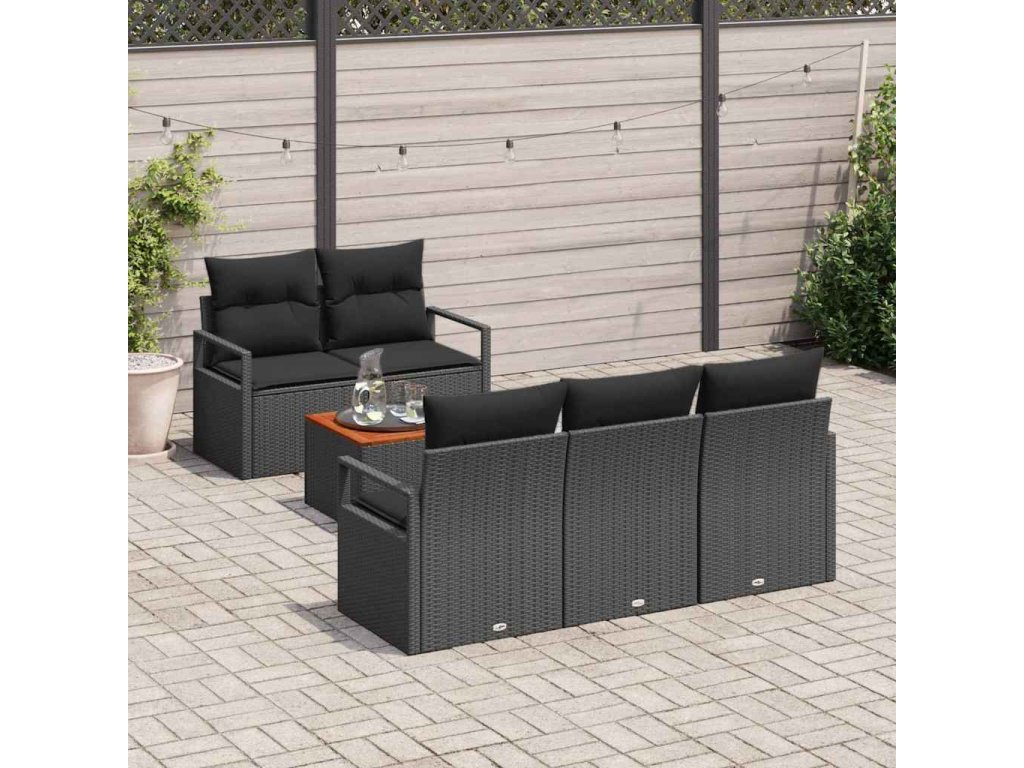 Sada zahradních pohovek s polštářem 6 pcs Černá Poly ratan 3347646