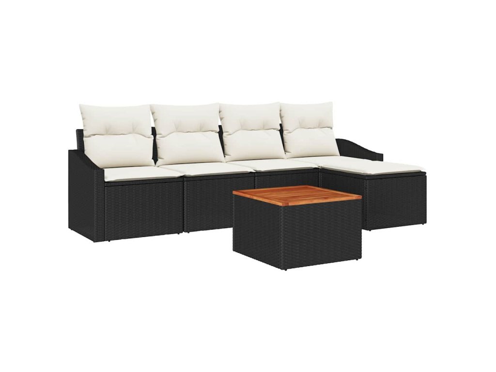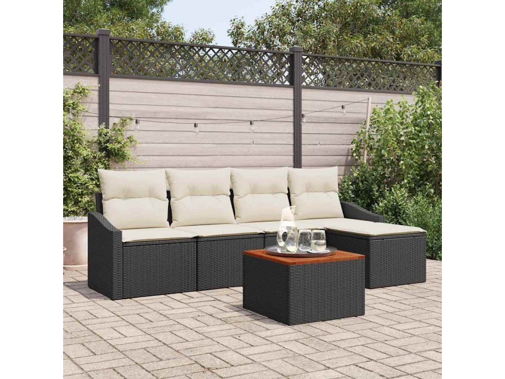Sada zahradních pohovek s polštářem 6 pcs Černá Poly ratan 3347817