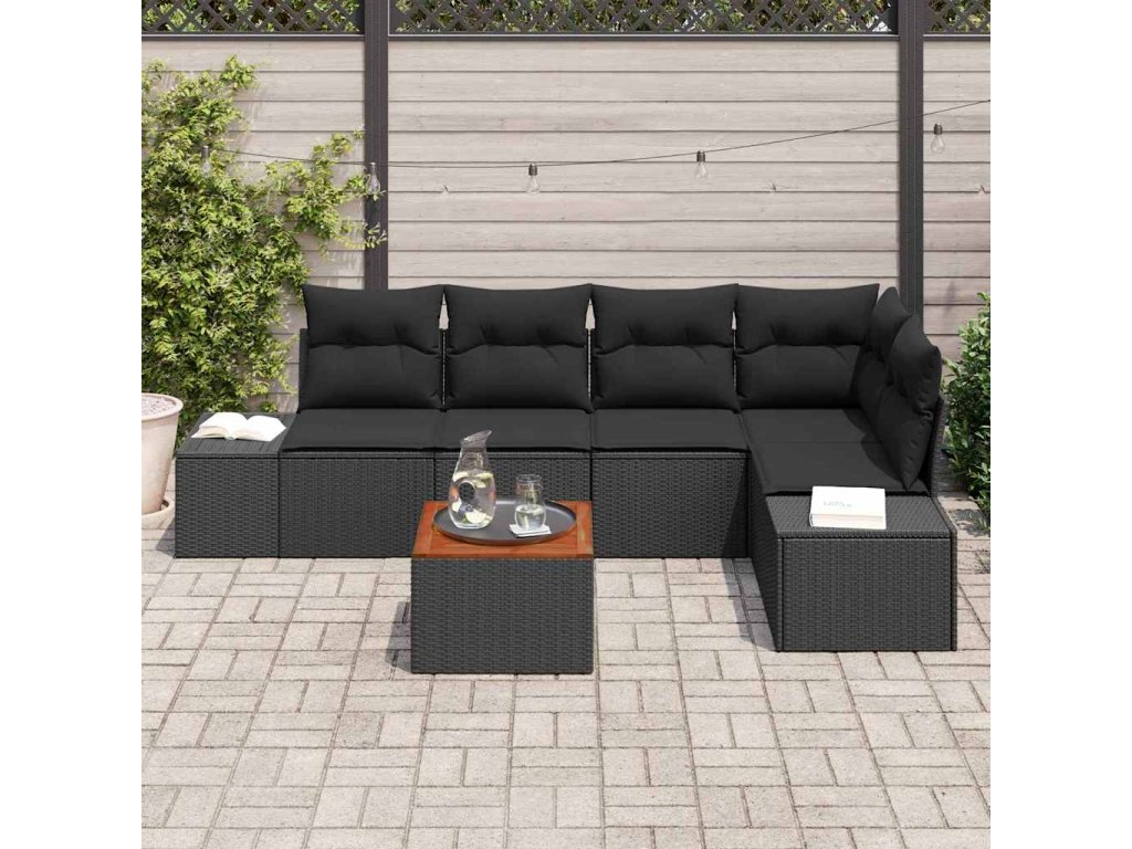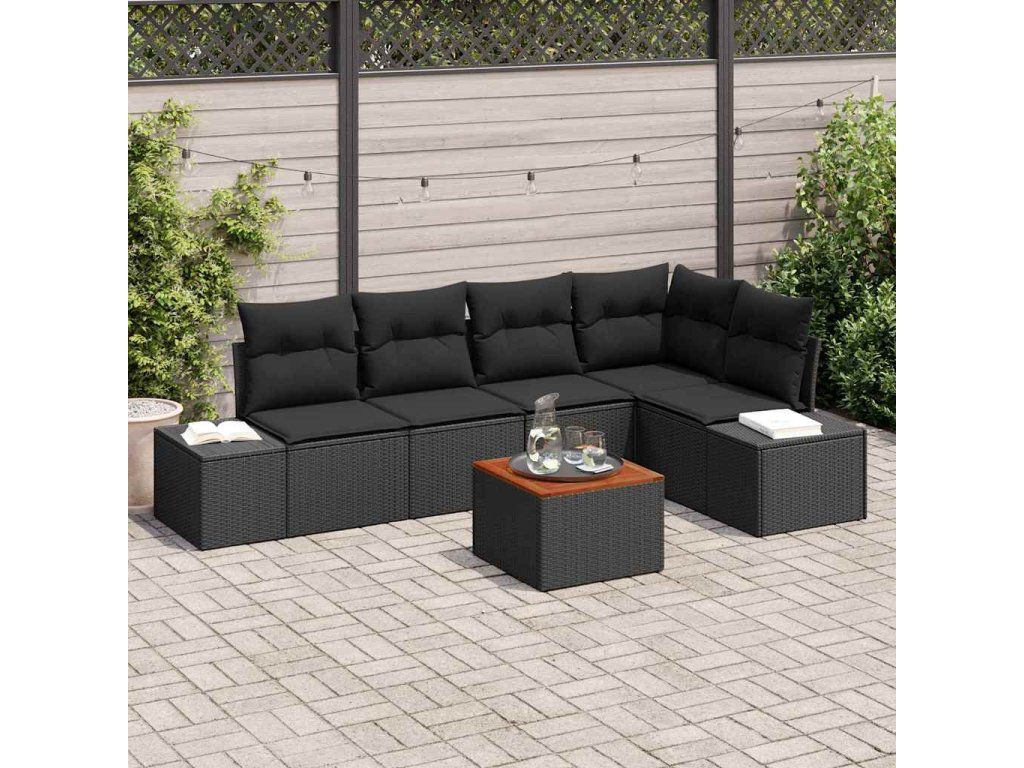 Sada zahradních pohovek s polštářem 6 pcs Černá Poly ratan 3347961