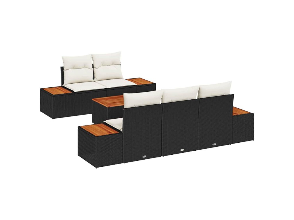 Sada zahradních pohovek s polštářem 6 pcs Černá Poly ratan 3348023