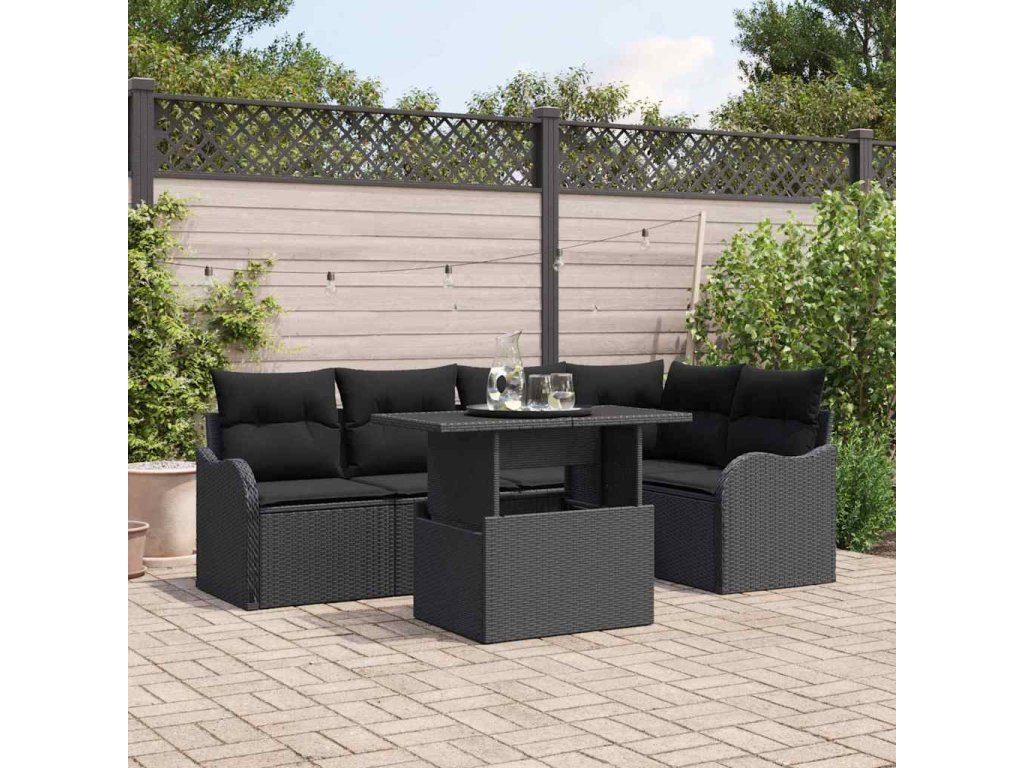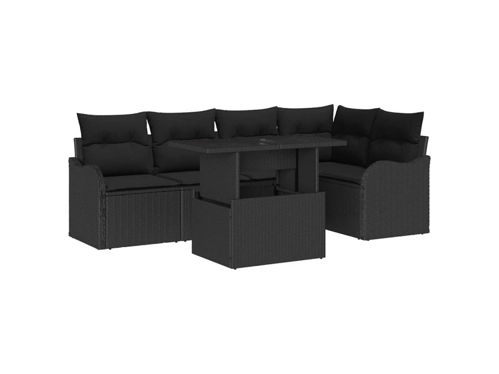 Sada zahradních pohovek s polštářem 6 pcs Černá Poly ratan 3348469
