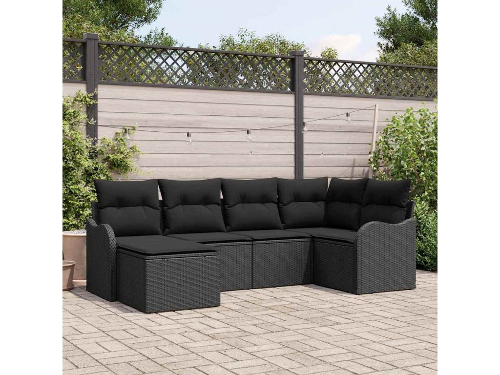 Sada zahradních pohovek s polštářem 6 pcs Černá Poly ratan 3354442