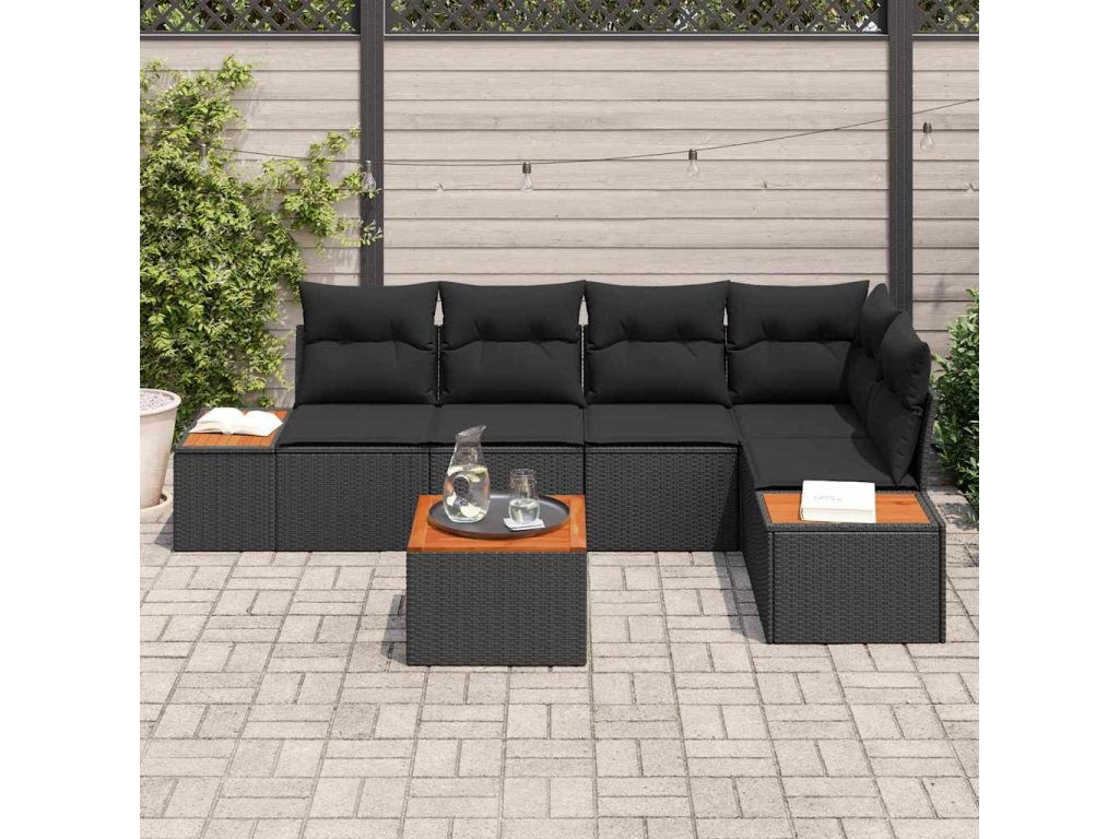 Sada zahradních pohovek s polštářem 6 pcs Černá Poly ratan 3356758