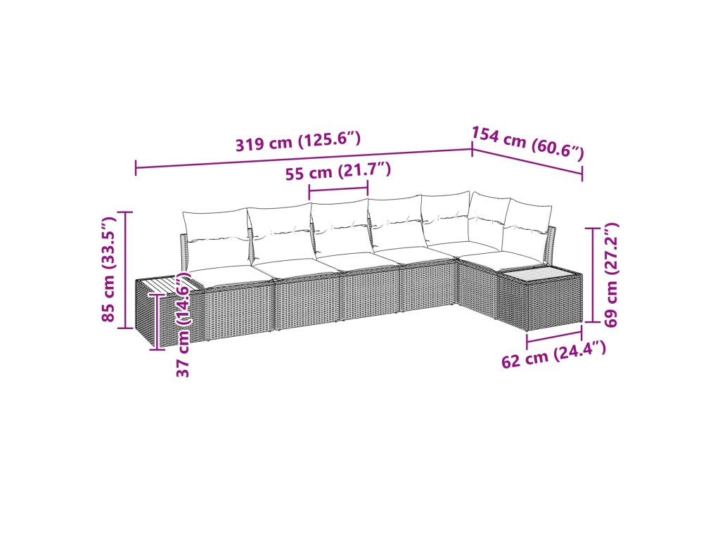 Sada zahradních pohovek s polštářem 6 pcs Černá Poly ratan 3356763