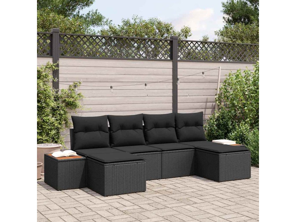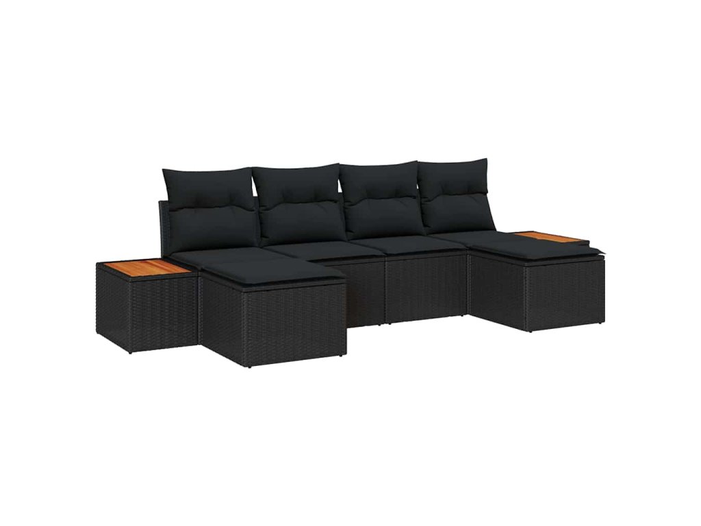 Sada zahradních pohovek s polštářem 6 pcs Černá Poly Ratan 3356808