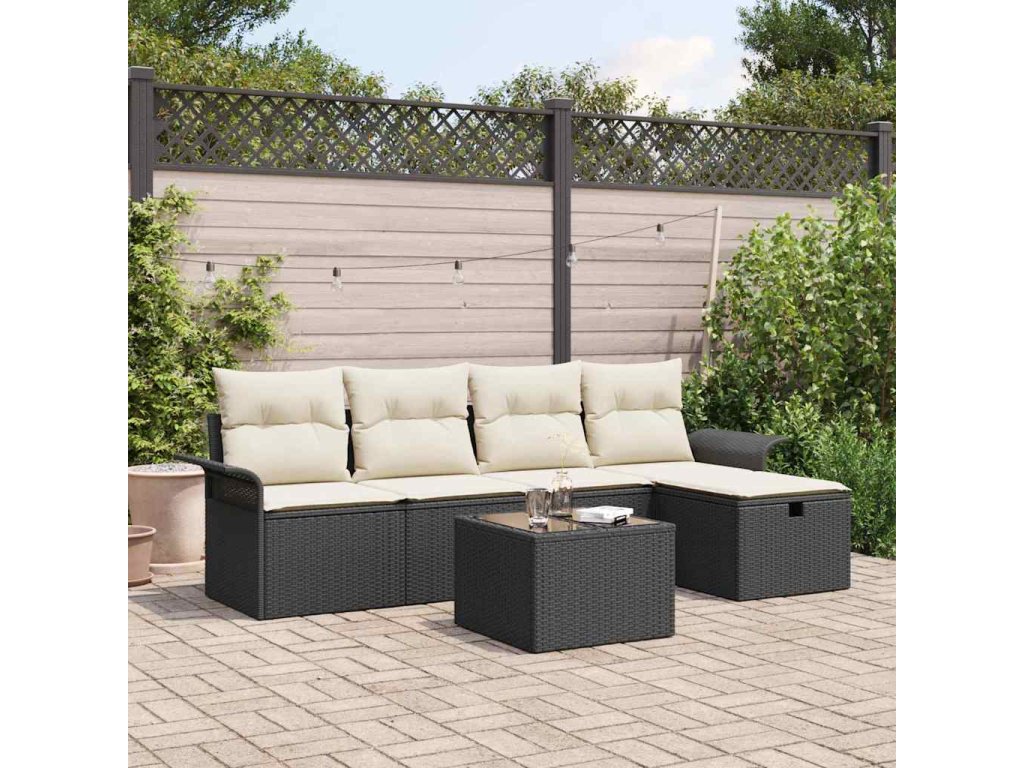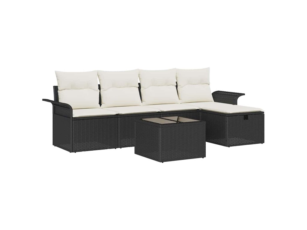 Sada zahradních pohovek s polštářem 6 pcs Černá Poly ratan 3360198
