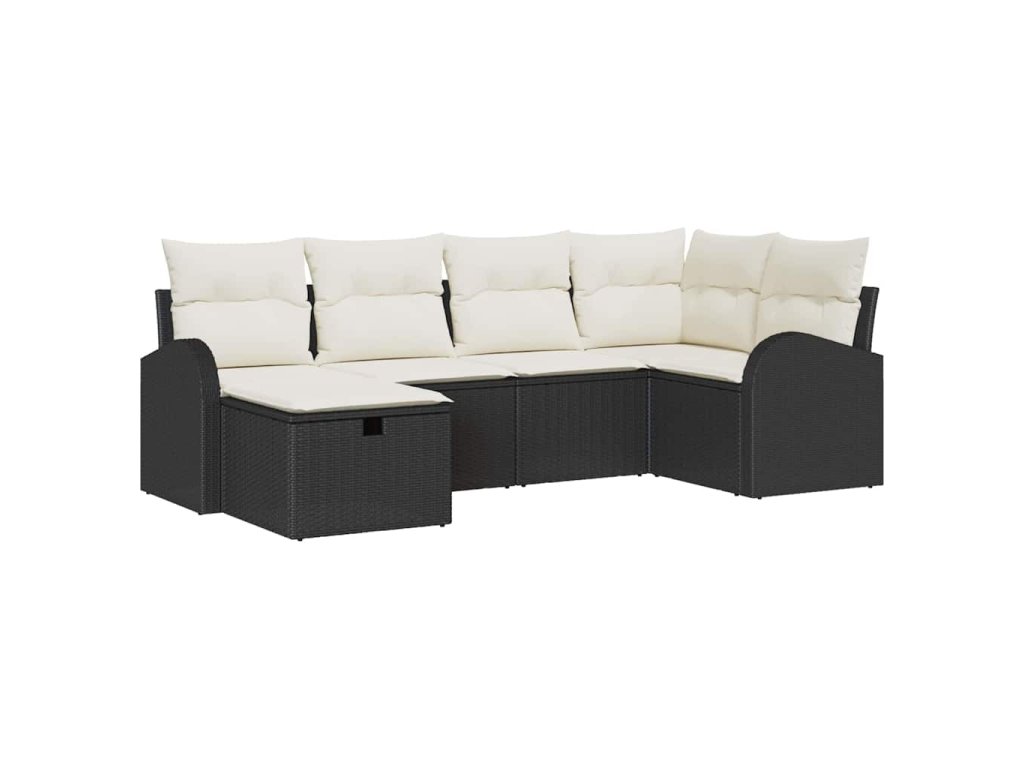 Sada zahradních pohovek s polštářem 6 pcs Černá Poly ratan 3360408