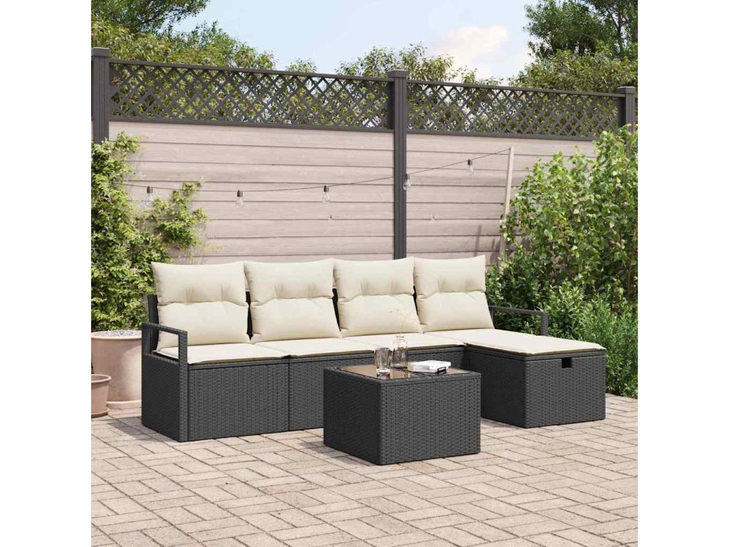 Sada zahradních pohovek s polštářem 6 pcs Černá Poly ratan 3360498