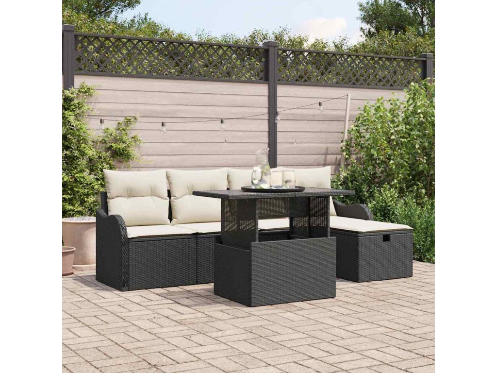 Sada zahradních pohovek s polštářem 6 pcs Černá Poly ratan 3361036