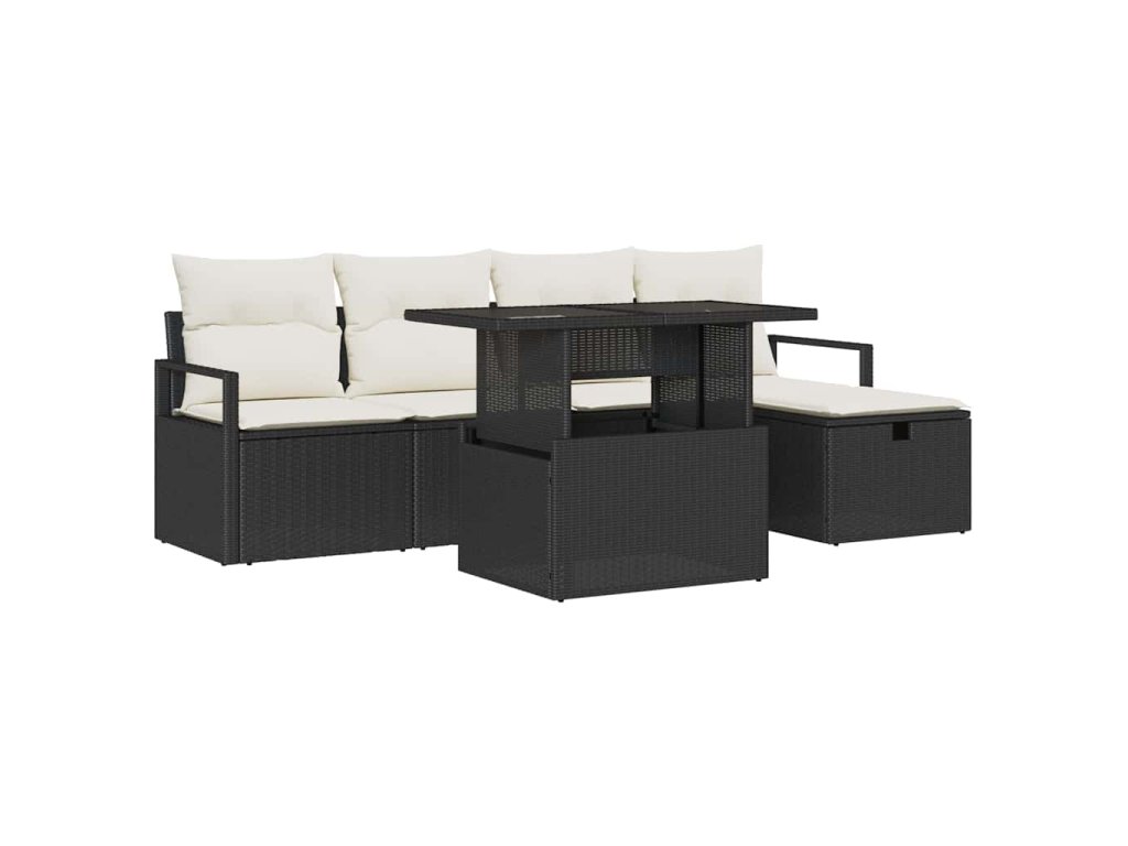 Sada zahradních pohovek s polštářem 6 pcs Černá Poly ratan 3361116