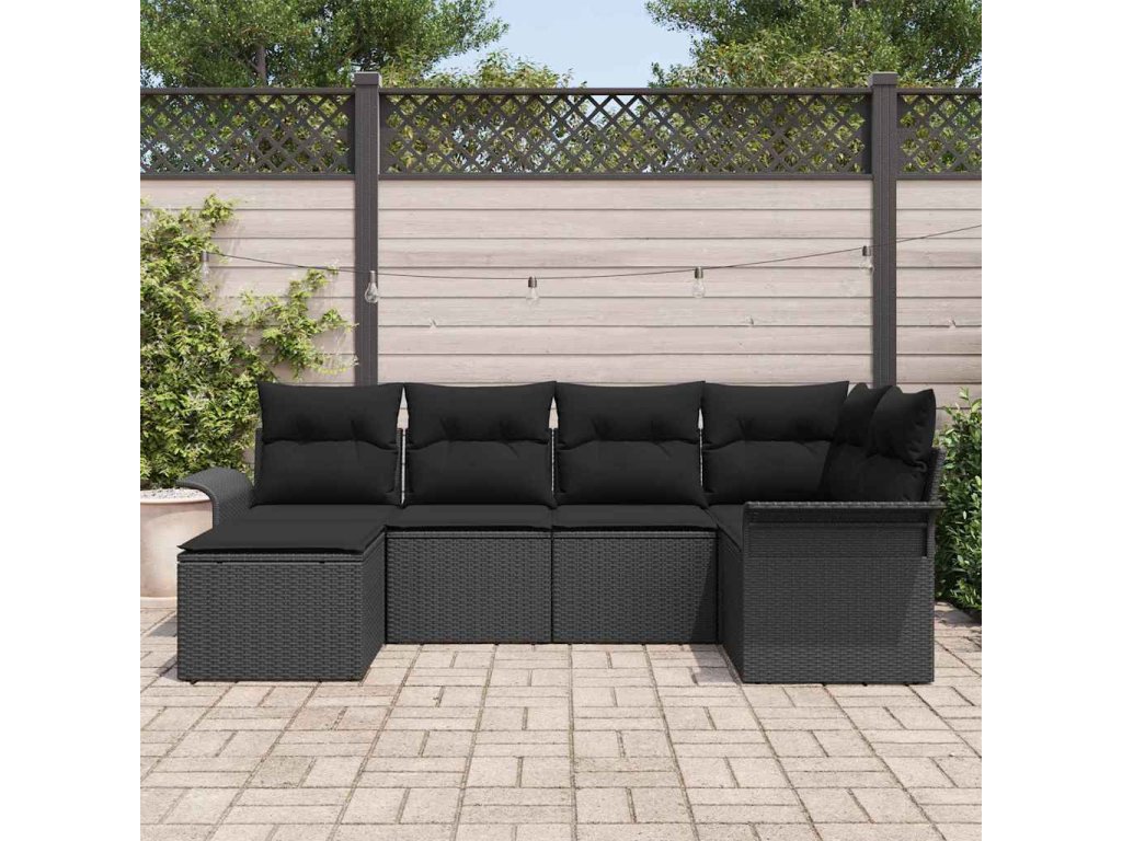 Sada zahradních pohovek s polštářem 6 pcs Černá polyratan 3345433