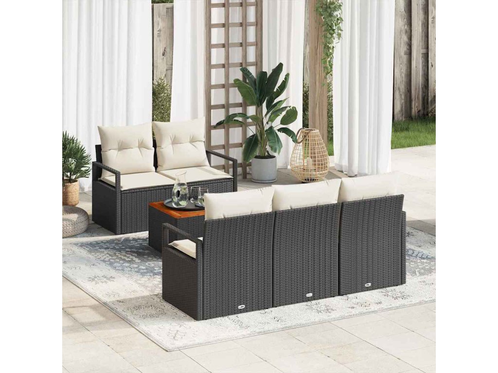 Sada zahradních pohovek s polštářem 6 pcs Černá polyratan 3347642