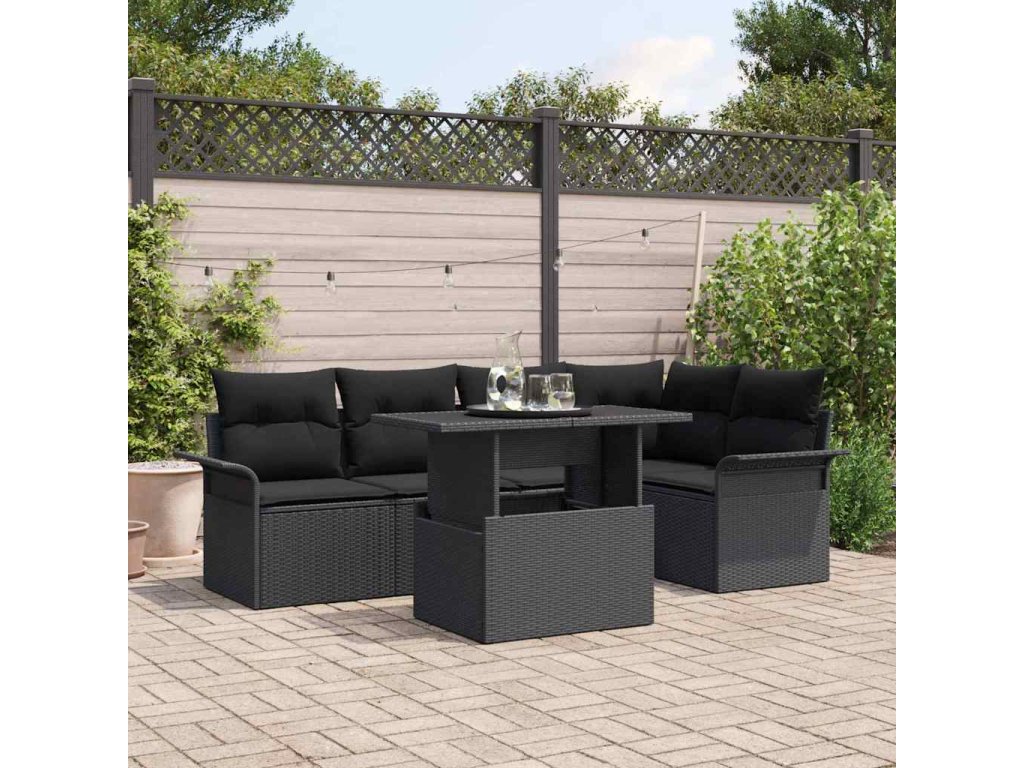 Sada zahradních pohovek s polštářem 6 pcs Černá polyratan 3348289