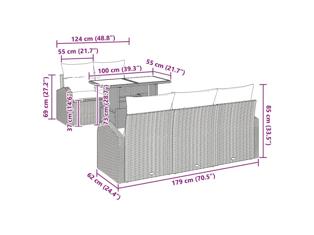 Tahle moderní obdélníková zahradní souprava byla navržena tak, aby podtrhla krásu tvé zahrady a nabídla pohodlné sezení. Spojuje elegantní současný design s modulárními uspořádáními. Její jemně tkaný vzhled a pevný vzor ji činí skvělou pro jakoukoli zahradu nebo terasu. Tato sada pohovek vytvoří útulné místo pro shromáždění s přáteli a rodinou u přírodní scenérie.