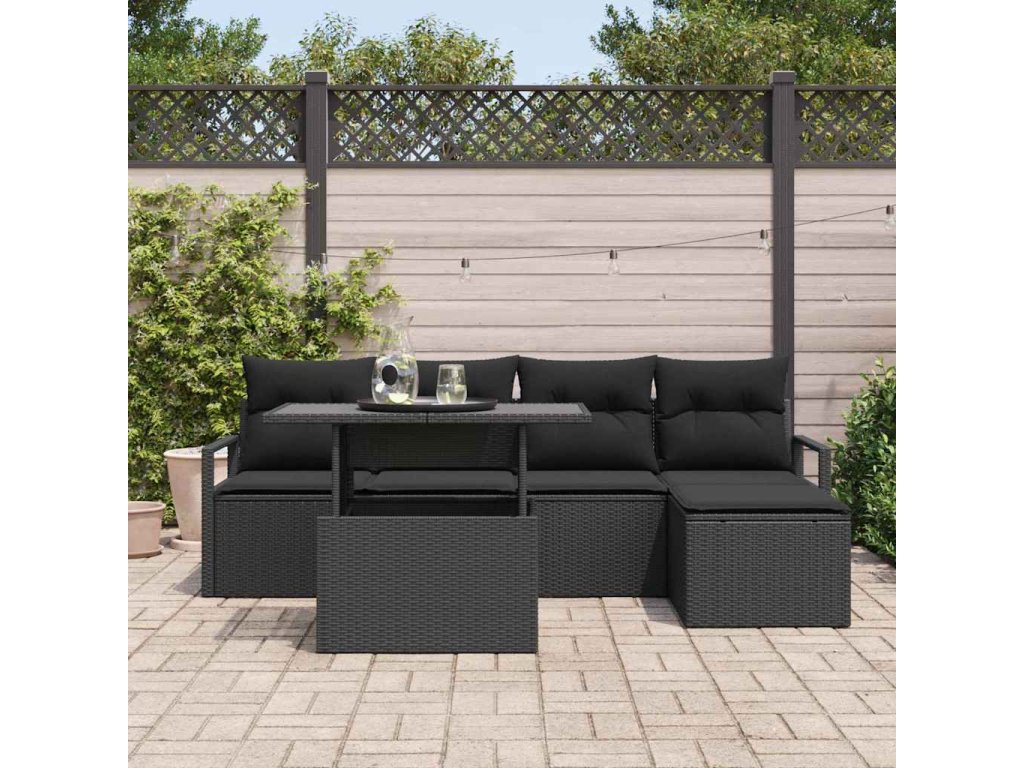 Sada zahradních pohovek s polštářem 6 pcs Černá polyratan 3348809