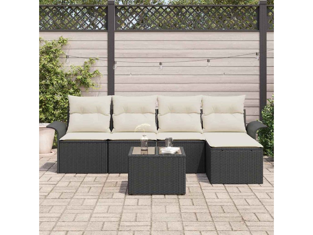 Sada zahradních pohovek s polštářem 6 pcs Černá polyratan 3353996