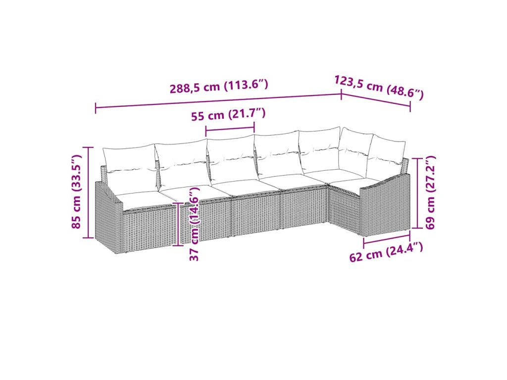 Sada zahradních pohovek s polštářem 6 pcs Černá polyratan 3355412