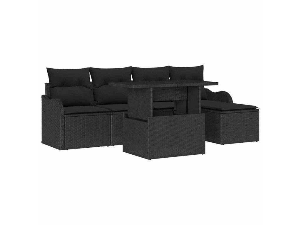 Sada zahradních pohovek s polštářem 6 pcs Černá Polyratan 3357186