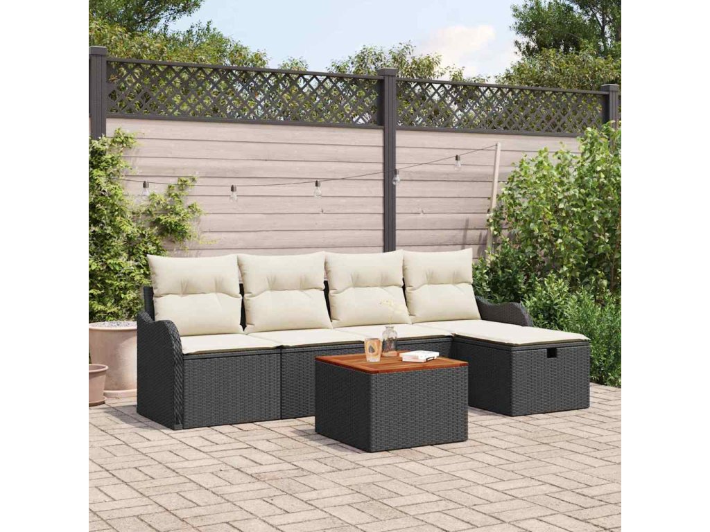 Sada zahradních pohovek s polštářem 6 pcs Černá polyratan 3359474