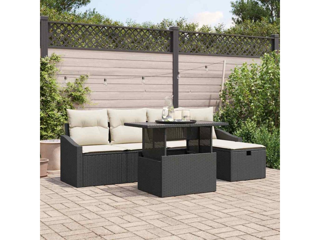 Sada zahradních pohovek s polštářem 6 pcs Černá polyratan 3361156